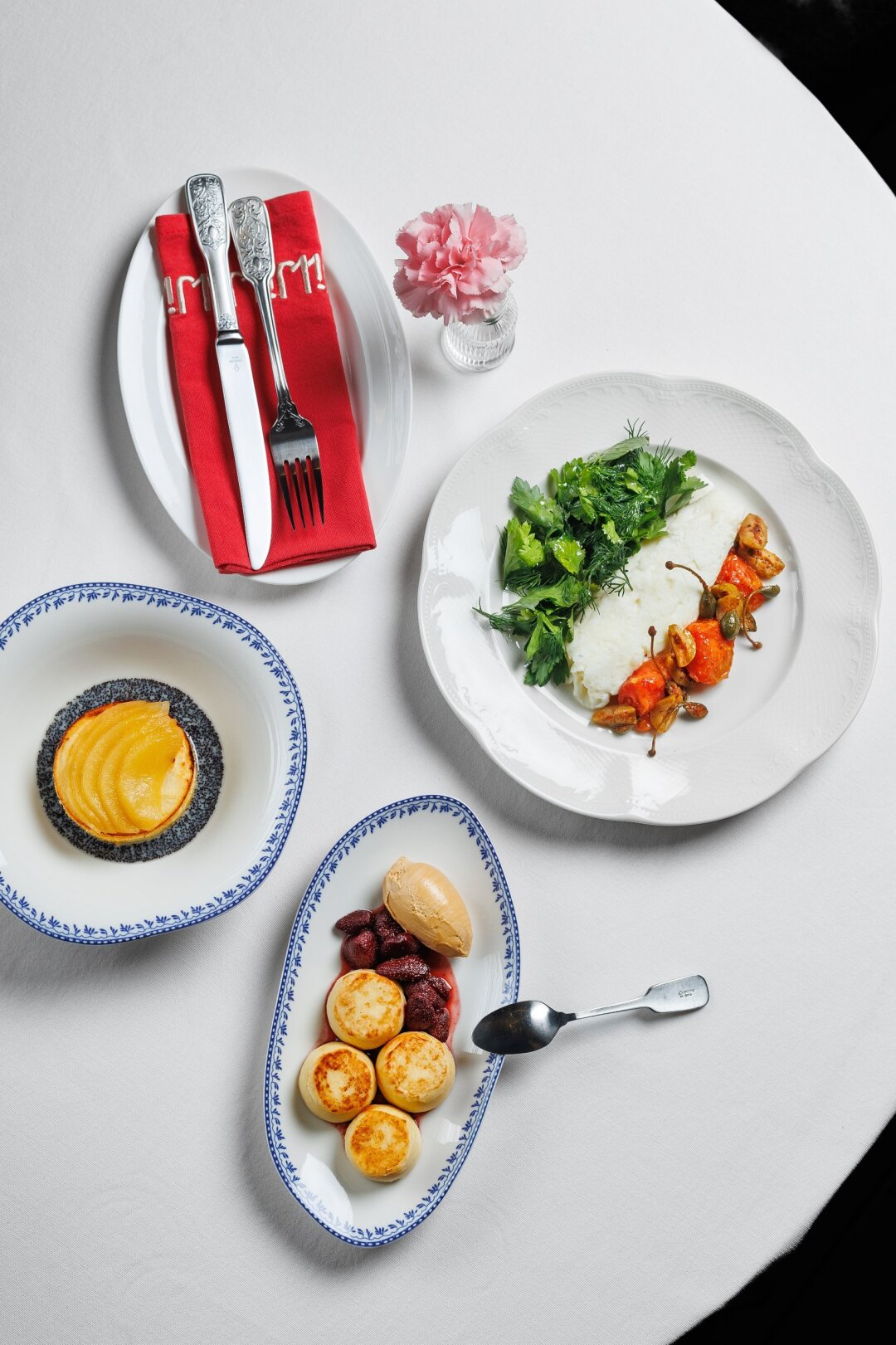 Для тех, кто любит начинать день основательно, на выбор — три больших сета: мясной, рыбный и с креветками. Есть возможность собрать завтрак под запрос гостя. Особое внимание — десертам: здесь и панкейки на топленом молоке, и теплая бриошь с соленой карамелью, и французская гренка. Выбор редакции — рикоттники с клубничным вареньем, кремом из сметаны и белого шоколада. На минуту мы закрыли глаза и будто попали в рай для сладкоежек! Из напитков предлагают ароматный кофе, фреши или бокал игристого. Потому что здесь считают, что утро — самый красивый ритуал дня.