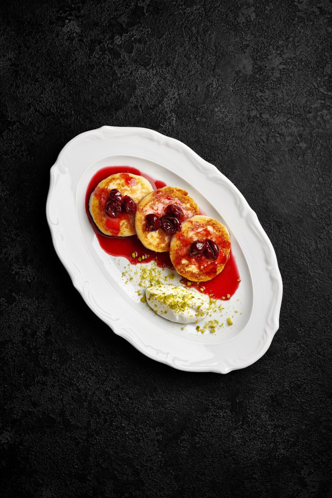 На десерт — теплый грушевый пирог с мороженым и соленой карамелью. Сливочный пломбир, хрустящие чипсы из груши — в меру сладко и душевно. Сырники в «12 слоёв» предлагают маковые. Подаются на подушке из крема nutella и с вишневым конфитюром с легкой кислинкой.