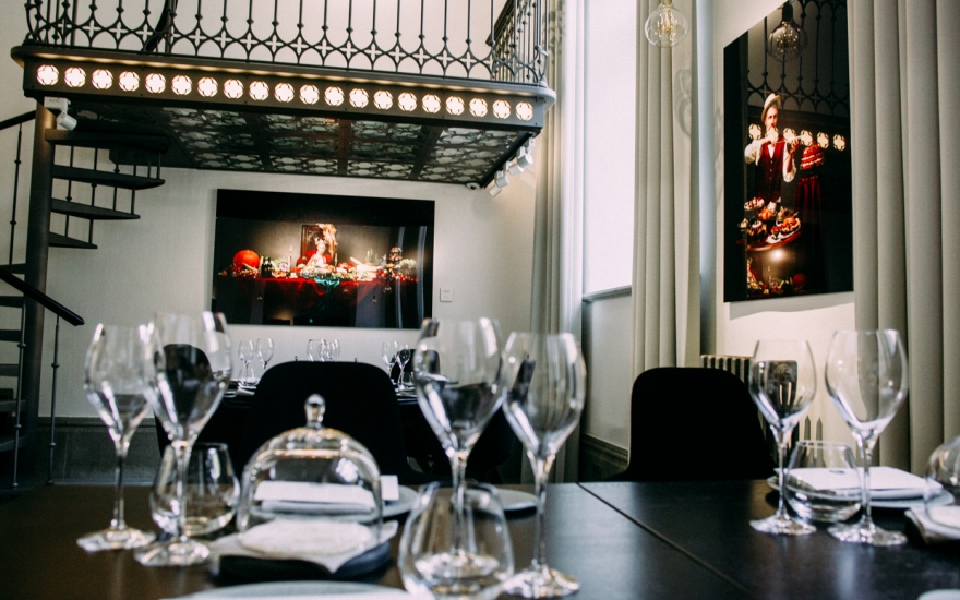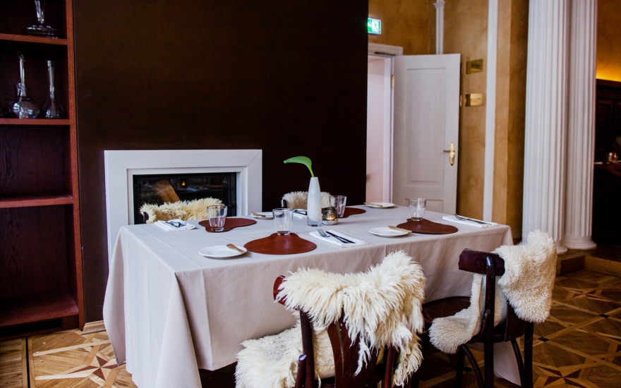 Самый эффектный ресторанный интерьер в Таллине — у этого заведения с высокой кухней: орнаменты, взятые из готической архитектуры, много черного цвета, стекла и главного эстонского минерала доломита, внешне похожего на мрамор, портреты и натюрморты в духе малых голландцев в точечной подсветке. Если присмотреться к живописи, окажется, что в обособленной ВИП-комнате на двенадцать человек — бесценные подлинники, а в основном зале — фотостилизация: герои съемок — персонал ресторана от поваров до официантов.