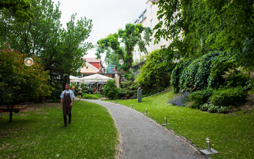 В ресторан попадаешь практически по сценарию фильма The Secret Garden — прямо с улицы Старого города ты по неприметным ступенькам поднимаешься в живописнейший двор, буйную зелень которого организует в пространстве мощь крепостных стен XIII века. На улице под обогревателями на террасе двухэтажного здания гости — от чиновников до программистов — сидят до поздней осени. Тут же расположены витрина, где с собой заворачивают местный черный хлеб, давший название заведению, и открытый гриль. Команда шеф-повара Янно Лепика одной из первых в Эстонии обратилась к национальным продуктам и достигла в их кулинарной аранжировке такого совершенства, что гастрономическое потрясение здесь случается даже не от крем-брюле со вкусом черного хлеба или жареного майонеза в мясном тартаре, а от простой говяжьей печени с гриля — она здесь такой нежности, что заставит бледнеть даже фуа-гра.