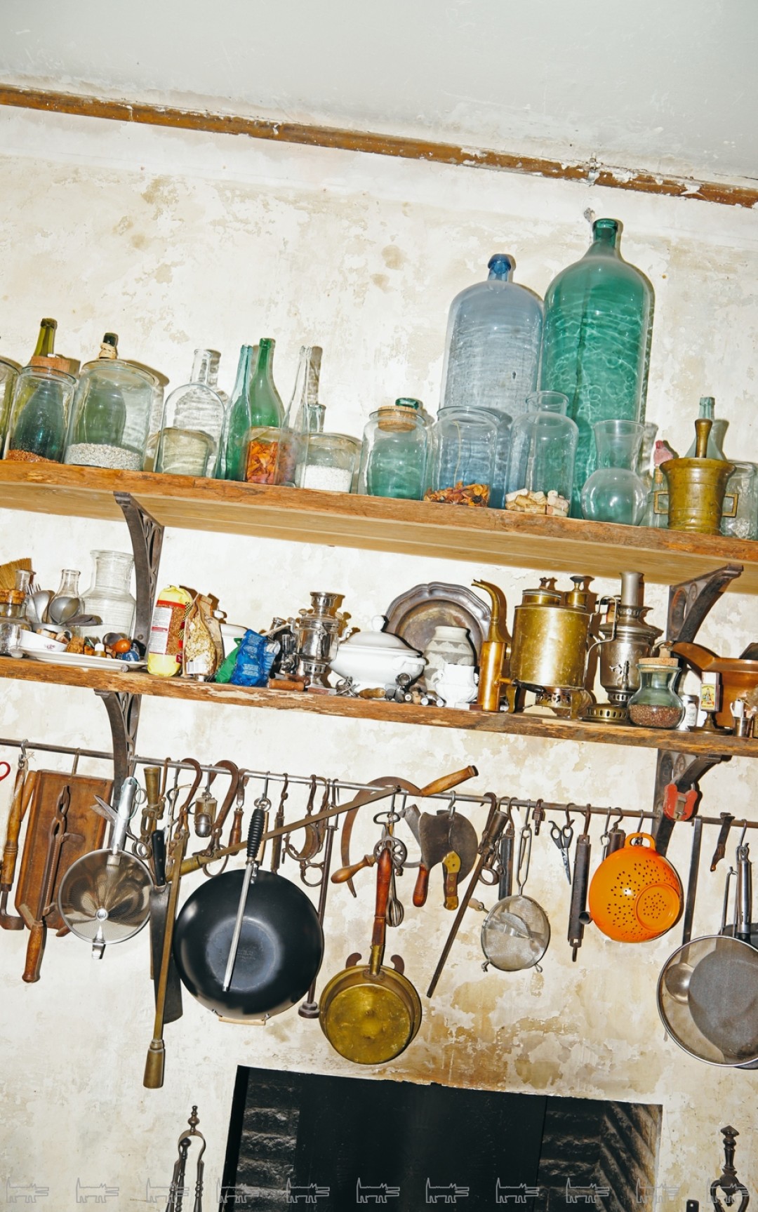 Андрей Дмитриев коллекционирует старинные картины, антикварные белые тарелки, стеклянные сосуды и медную кухонную утварь – и все это использует в