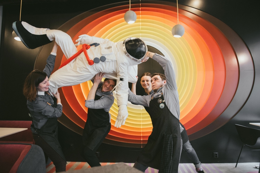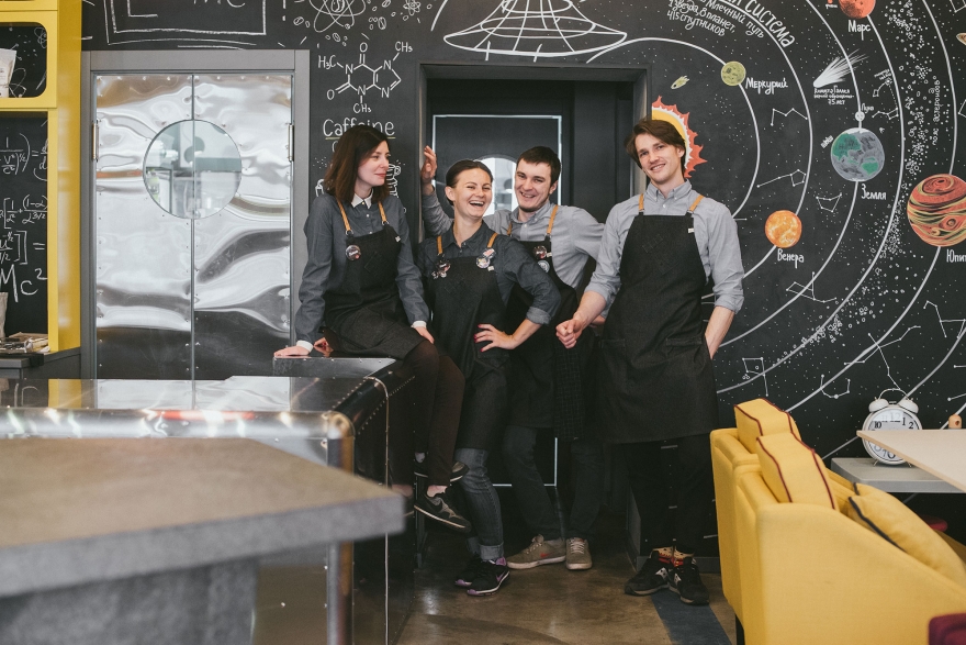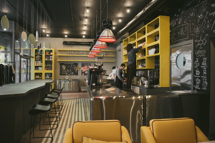 Кофейня «Черная дыра» ориентирована на ценителей кофейной культуры. Создатели этого тематического места с особым вниманием относятся к кофейным моносортам и степени обжарки зерна. Все ради приготовления изящного и яркого по вкусу черного напитка. Помимо традиционных пунктов меню в «Черной дыре» есть авторские кофейные напитки, которые готовятся с добавлением крафтовых авторских сиропов. Например, многим нравится сосновый раф с сиропом из сосновой шишки, обжаренным фундуком и веточкой розмарина. Кроме прекрасно приготовленного кофе в «Черной дыре» есть необычная космическая еда в тюбиках – свежо и оригинально. Кроме того, в кофейне проходят кофейные мастер-классы.
