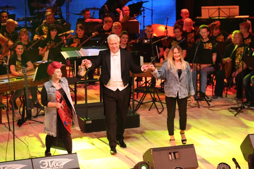 С каждой минутой желающих попасть в Большой зал становилось все больше, гости ждали заключительной церемонии. Задержка организаторов подогревала дополнительный интерес. Открыли шоу эпатажные модели с прическами от Оксаны Исаенко, а после началось большое выступление оркестра Folk-future. На разогреве был Иван Белыш, исполнявший хиты митрополита Иоанна, но публика ждала другого Ивана – Noize MС. Час ожидания равен четырем трекам и семнадцати минутам на сцене рэп-рок-исполнителя. В своих соцсетях музыкант признался, что выступление на «Этажах» вызвало у него восторг, поблагодарив за это дирижера оркестра и своего наставника Евгения Алешникова.