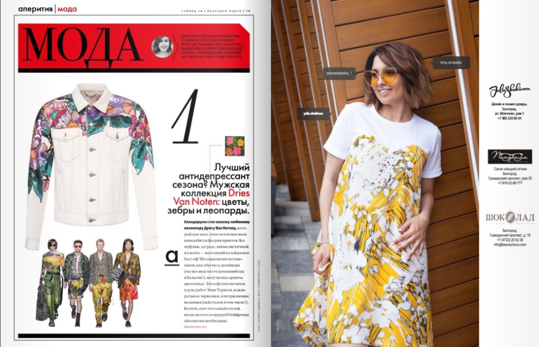 Затем мода. Директор отдела Дарья Шакирова собирается косплеить клумбу: мужские рубашки Dries Van Noten с вышитыми клематисами она будет носить с нормандским гербарием сумку Lady Dior.