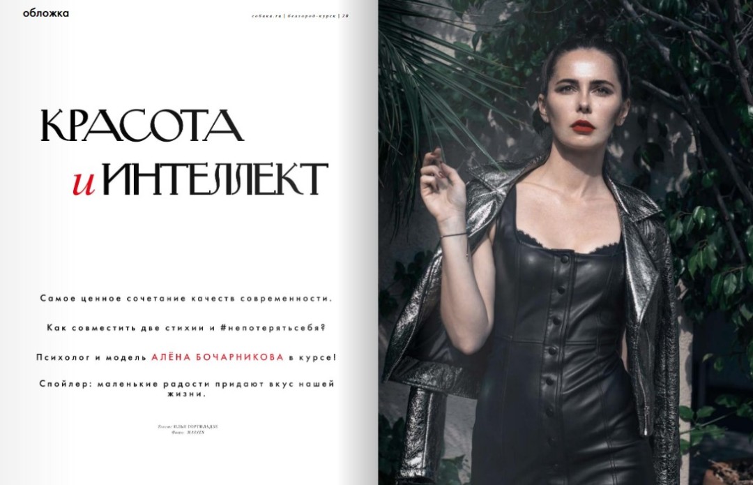 Теперь про человека с обложки. Красота и интеллект. Самое ценное сочетание качеств современности. Как совместить две стихии и #непотерятьсебя? Психолог и модель Алена Бочарникова в курсе!