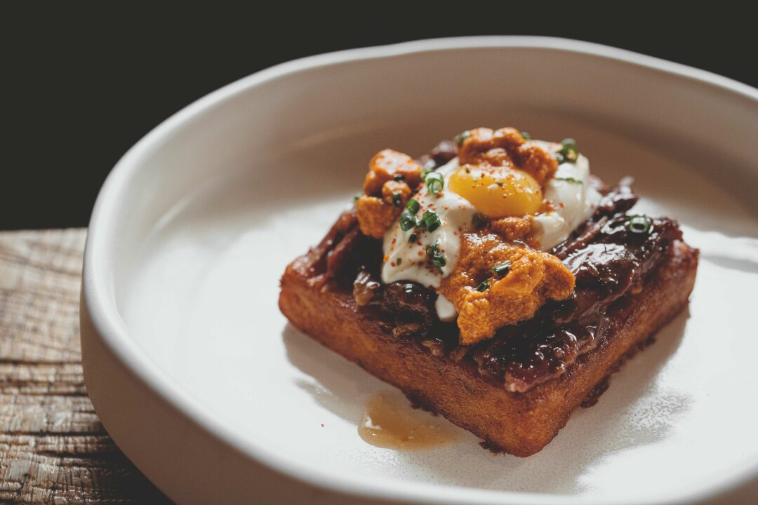 Ресторан называет себя италоливанским, но с утра здесь царит полный космополитизм. В меню яйца бенедикт, сладкие и соленые, на манер французских крок-месье и крок-мадам, бельгийские вафли, круассаны, сырники, овсянка и фирменное семейное блюдо от шефа дружественного ресторана «Мама Тута» Гии Хучуа: ленивые вареники, которые подают либо со сметаной и тутовым вареньем, либо с кокосовым молоком и сиропом из фиников.