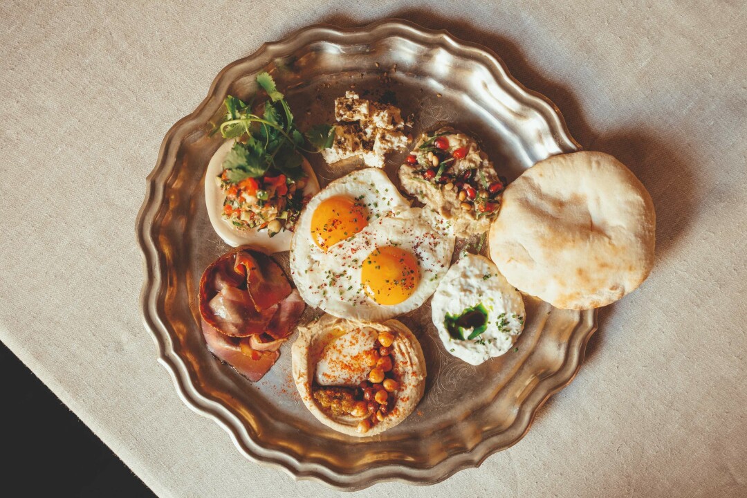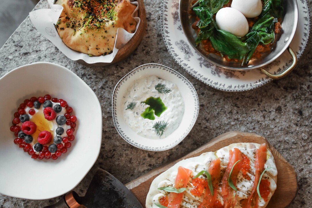 Завтраки в самом центре Москвы, на острове напротив Кремля, с отчетливым турецкоближневосточным акцентом: в меню есть и менемен (турецкая яичница с овощами и фетой), и яйца по-турецки (пашоты в йогуртовом соусе с вялеными томатами), и, конечно, большой турецкий завтрак на двоих, ассорти из множества утренних закусок: хумус, баклажаны, оливки, йогурт, брынза, каймак с медом, финики, салат из овощей, зерновой хлеб и бублик симит.