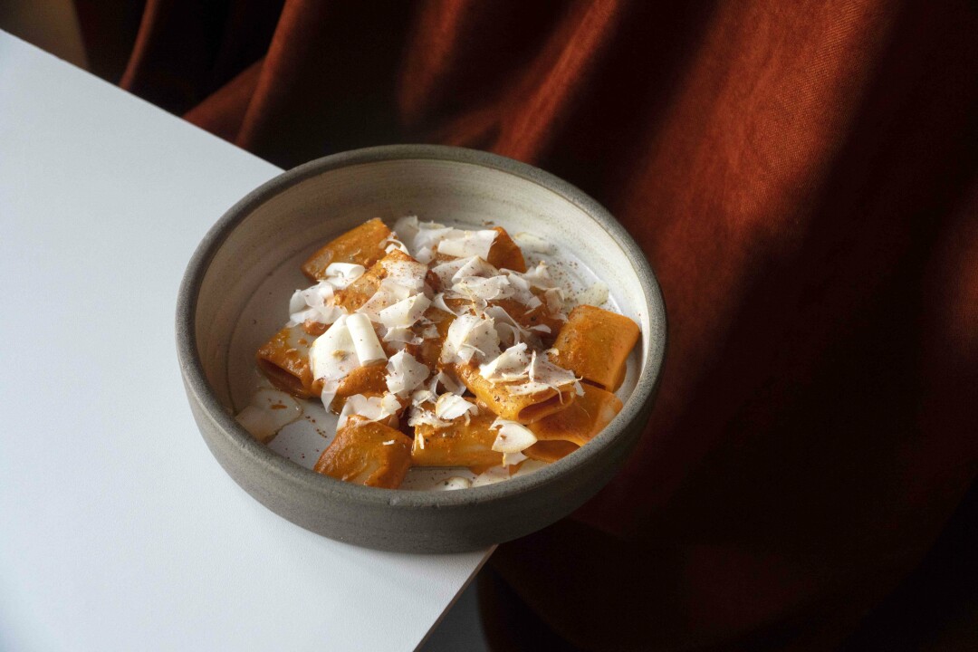 Единственный недостаток новой лапшичной Никиты Фомкина — ее локация: официальный адрес числится по Мясницкой, фактически надо изрядно углубиться во дворы, чтобы найти вход со светящейся вывеской. Хотя такое расположение можно считать частью концепции «китайскоберлинской кафешки для понимающих» — они редко находятся на первой линии. Вместо табуреток — пивные ящики, вешалка для пальто отгорожена куском пластика, в карте напитков — «игристое на кране» (просекко, в которое могут добавить лед и лист лайма), на столах — китайские расписные термосы, в которых подают кипяток для чая. В меню несколько видов лапши и бао, все не чрезмерно острые и посолены на московский вкус.