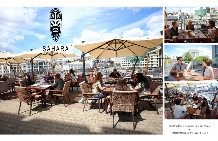 «Сахара» - это ресторан европейской, средиземноморской и национальной кухонь, с сытными завтраками, деловыми обедами, романтическими ужинами и теплой домашней атмосферой. С мая по сентябрь работает просторная летняя терраса с великолепной панорамой исторического центра города.