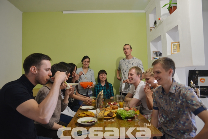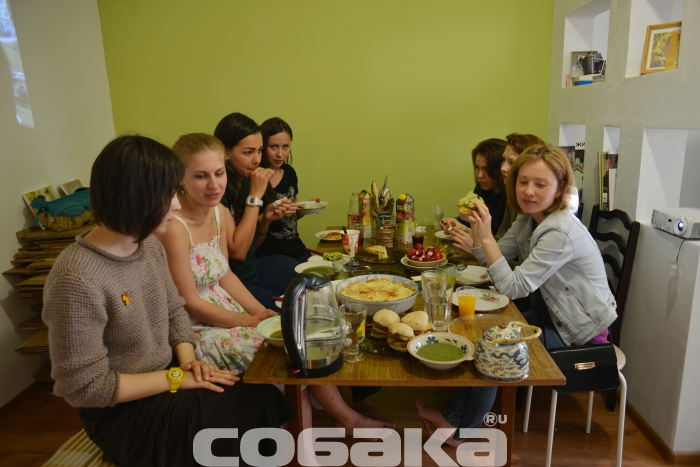 На Адоратского 4 в этот день открылся домашний ресторан "Ашхана", в меню были мясные и веганские блюда. Предпочтения организаторы отдали весенним блюдам, на столе - редиска, астраханская вобла, щавелевый и крапивный супы, гамбургеры с гороховыми и мясными котлетами, на десерт - чай и шарлотка по-Цветаевски. Как отмечают хозяева ресторанчика, а среди них и репортер сайта "Собака.ru", в этот день их посетили около 30 человек и они полностью окупили свои затраты.