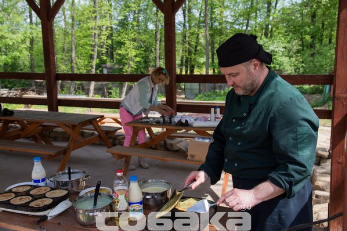 В детском компьютерном лагере "Байтик" открылся ресторан "Блиннн". Гостям предлагали блины с чаем из самовара. Начинки были самые разнообразные - сладкие, соленые, острые, домашние варенья и джемы.