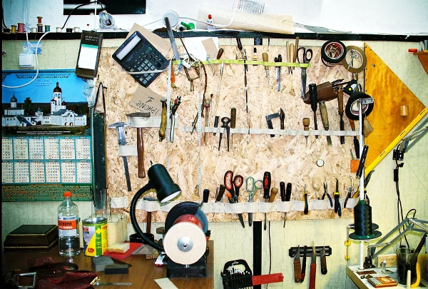 В прошлом декабре предприятие, на котором я работал, сократилось, и я решил, что это знак. Открыл собственную мастерскую при магазине Retro Shop. К тому времени у меня был накоплен опыт и все необходимые инструменты. Появился круг постоянных клиентов, кроме того, я произвожу готовые изделия для магазина «Ретро Шоп»: сумки, кошельки, ремни и другие аксессуары.