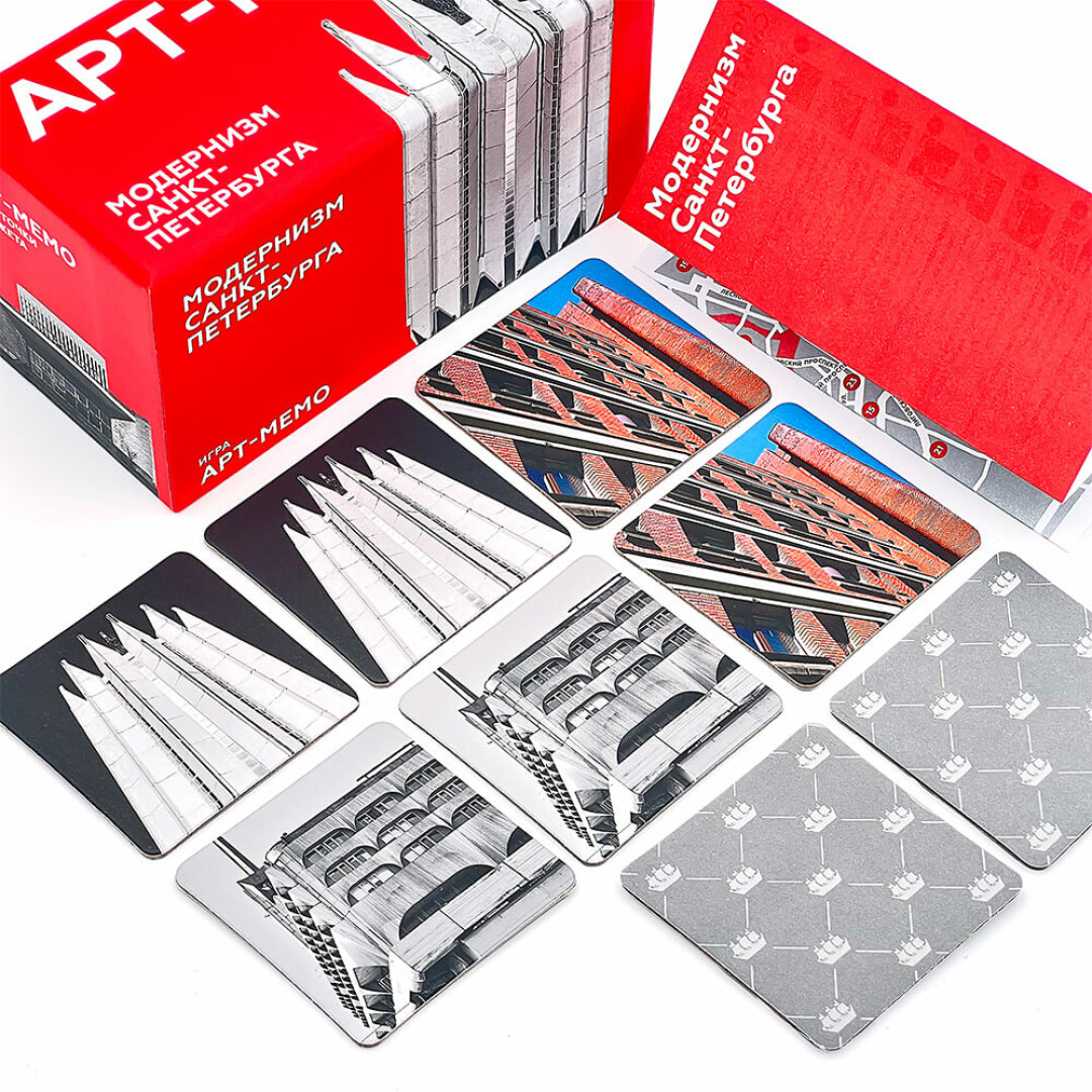 Популярная карточная игра на тренировку памяти создана дизайнерами ABC design совместно с фотопроектом архитектуры советского модернизма beton_navsegda. Цель — найти и собрать как можно больше парных карточек. Кстати, такая же есть с доходными домами Петербурга.
