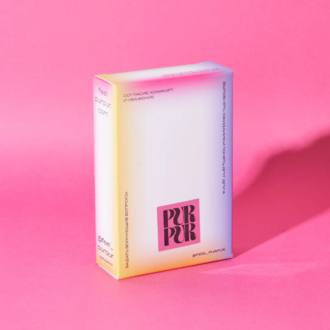 Карточная игра от бренда секс-позитивных продуктов Purpur. Суть простая: нужно перемешать колоду, вытягивать карточки и отвечать вместе на вопросы о детях, родителях, деньгах, совместной жизни, терапии и смерти. Можно играть с друзьями или партнерами.