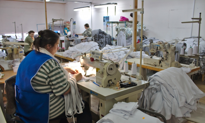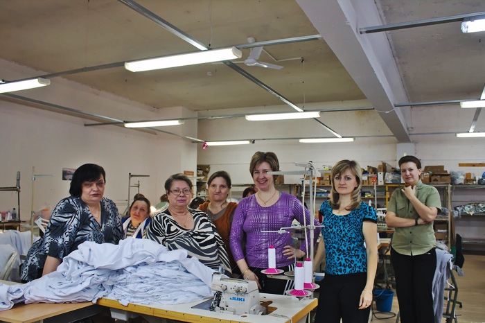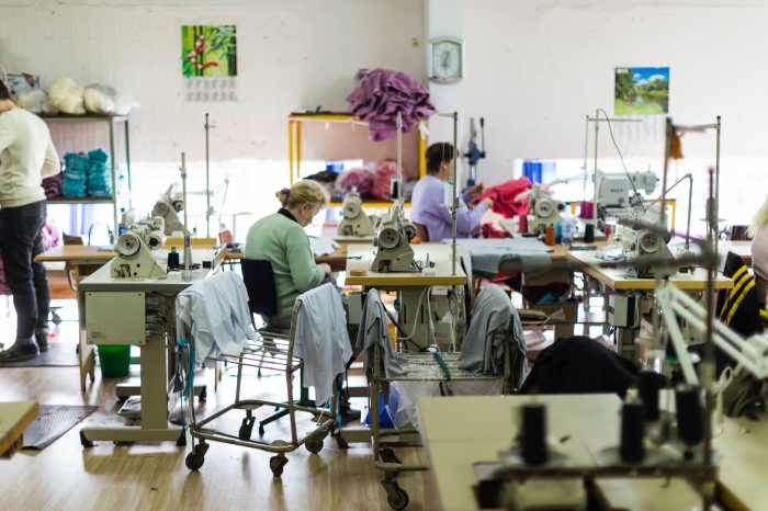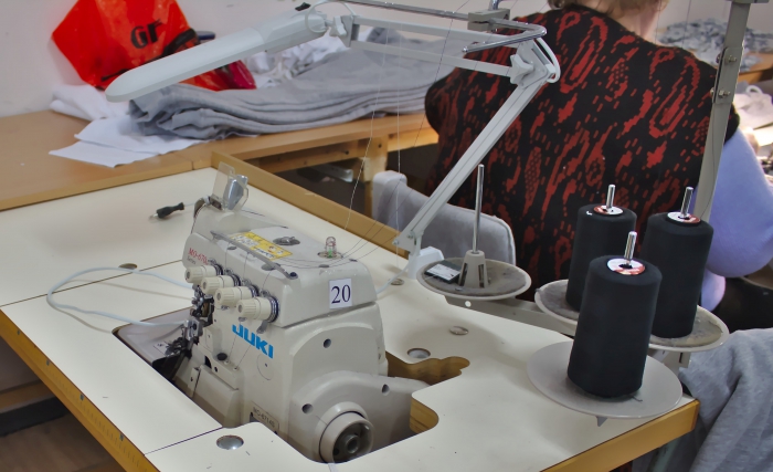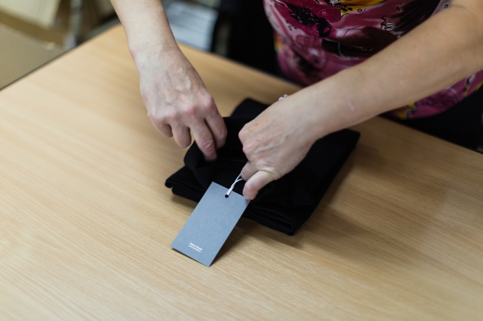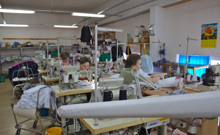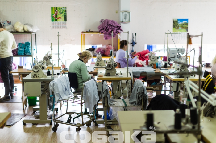Раскроенные детали бригадир смены распределяет между швеями, причем каждая выполняет операции, которые по времени занимают от 20 до 180 секунд, строго по паспорту изделия. Каждая сотрудница отвечает за определенных вид шва — боковой, значит сидит за машинкой-оверлок, прямой шов — за машинкой-прямострочной. Готовое изделие собирается под руководством бригадира. После того как изделие готово, к нему пришивается фурнитура: пуговицы и ярлычки. Финальным этапом становится отпаривание вещи и упаковка.