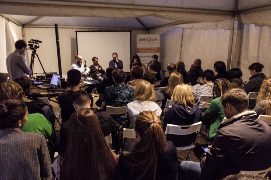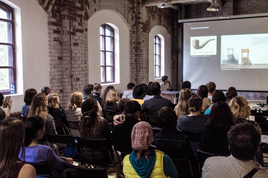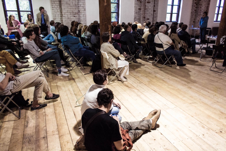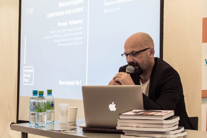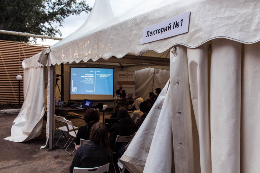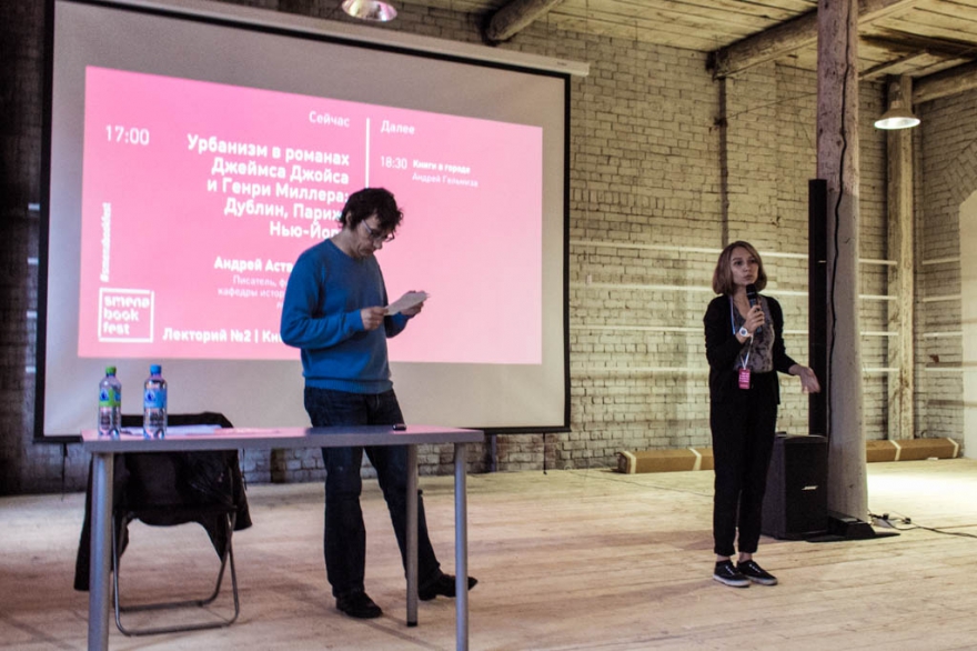 И хотя ярмарка всегда была важной частью книжных фестивалей центра, масса людей приходила ради лекций приезжих гостей. В течение трех дней под шатром и на втором этаже «Смены» (территорию автомойки пришлось отдать из-за дождя издательствам) вещали писатели, издатели, журналисты и все, кому не безразлична литература. Фоторепортер «Собаки» побывал здесь на второй днеь, который прошел под эгидой «Книги и город». Художник Игорь Поносов рассказывал о тексте в уличном искусстве, а в то же время его коллега и по совместительству публицист Илья Фальковский показал, каким видится Китай через призму преподавания местным жителям русской литературы. В тот же вечер в роли спикеров были писатель и филолог Андрей Аствацатуров, философ Игорь Чубаров и генеральный продюсер первого Книжного фестиваля на Красной площади Андрей Гельмиза.