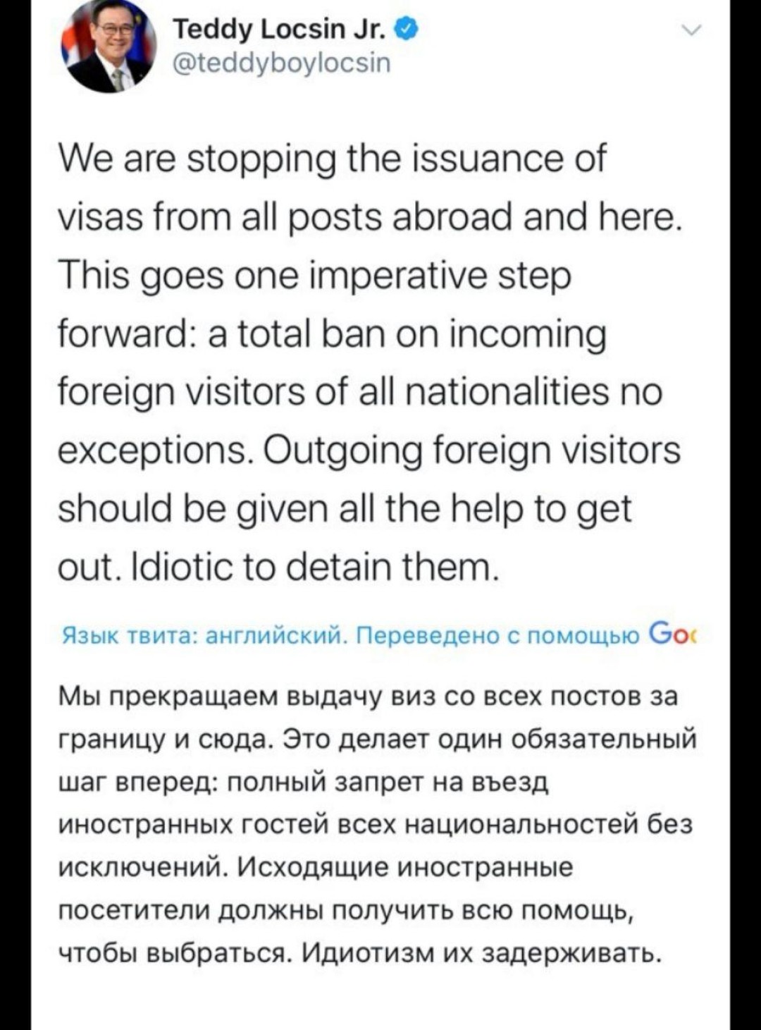 Принять решение остаться или ехать было трудно, потому что все постоянно меняется: пару часов назад журналист и спичрайтер президента Тедди Локсин заявил, что визы туристам выдавать не будут, уезжайте из страны. Час назад я узнала, что из-за карантина штраф за безвизовое пребывание отменили.