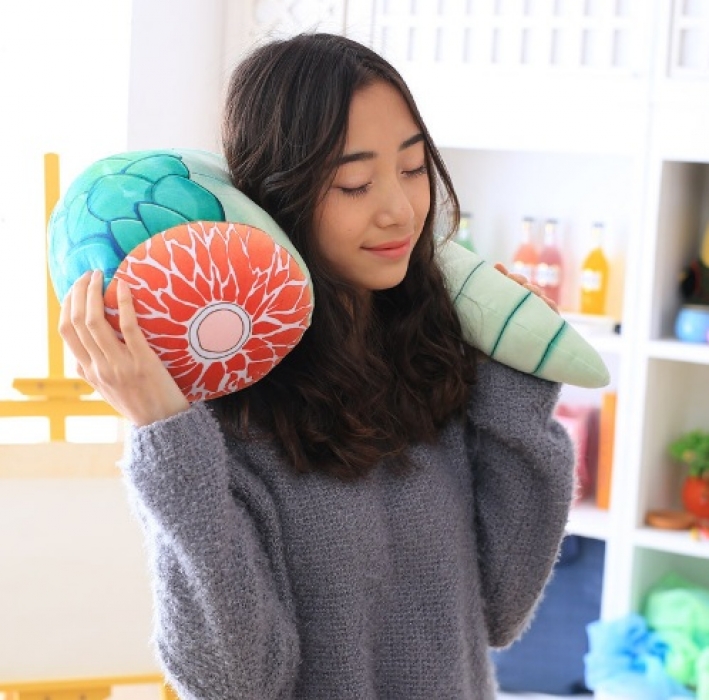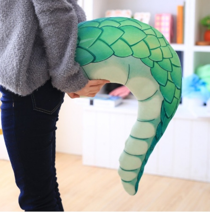 Плюшевый хвост ящерицы очень удобно подложить под шею, а еще его можно примерить на себя, как показано на иллюстрации.