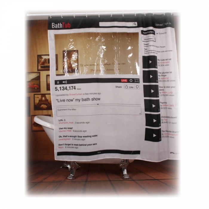 Занавеска для душа в виде страницы Youtube