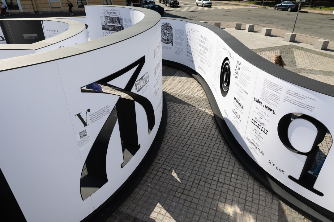 Перед западным фасадом «Манежа» появился настоящий памятник кириллице — в pop-up формате: лабиринт в форме буквы «а» рассказывает об истории кириллической письменности от средневековья до современности. Кроме того по всему городу появились «памятники буквам» от Покраса Лампаса, Шишкина-Хокусая и других художников. «Собака.ru» поговорила с автором лабиринта — одним из самых известных российских художников-типографов Юрием Гордоном (создал шрифты для половины российского глянца!) о том, как введенный Петром I шрифт «породил» Пушкина и Достоевского и о реализованном проекте памятника Бродскому.