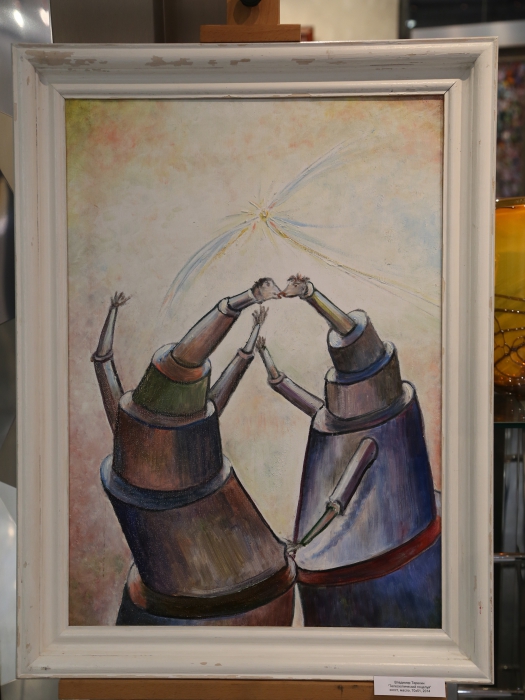 "Выставка демонстрирует высокий уровень профессионализма участников, - говорит искусствовед Розалина Шагеева. - При этом, к примеру, Терехин идет вослед авторитетам, а его техника уникальна, как и тематика. У него есть просто прекрасные пейзажи. У Бандуры - удивительное сочетание ремесленного адского труда и философских образов. Что-то похожее на его "Прощание с Сократом" я ни разу не встречала. При этом его дочь Ирина Чернавина экспериментирует, хотя у каждой композиции есть структура. Но в основе ее работ - импульс, энергетика. У нее больше радости, мифологии, она совершенно свободно, размашисто, рельефно воплощает вселенскую тематику - и в этом совпадает с отцом".