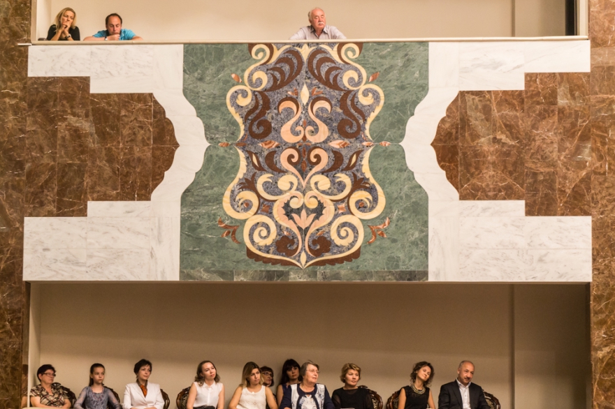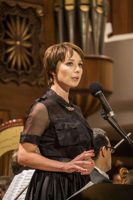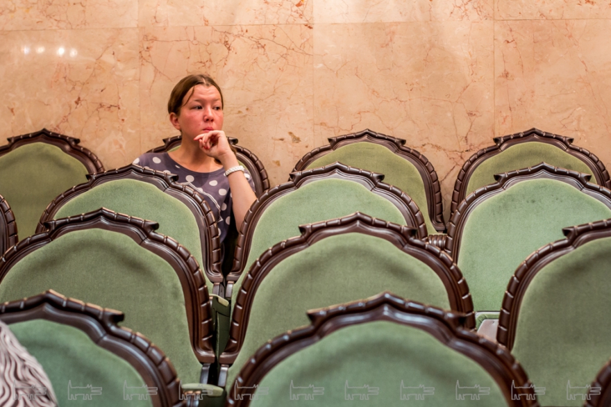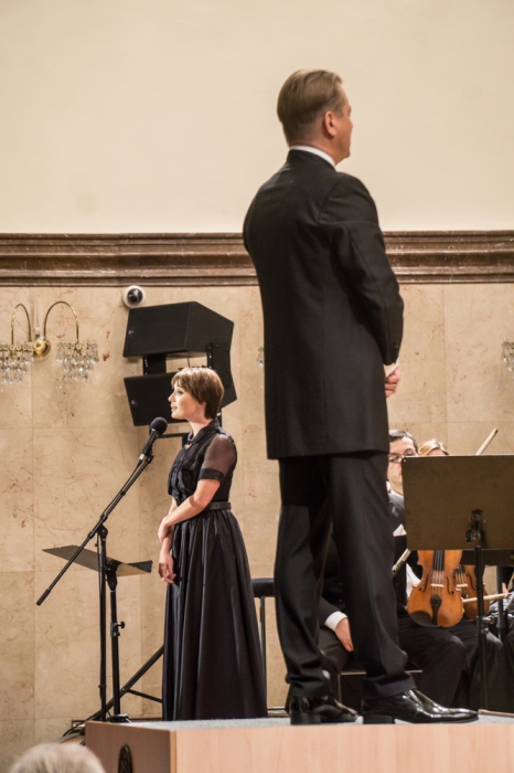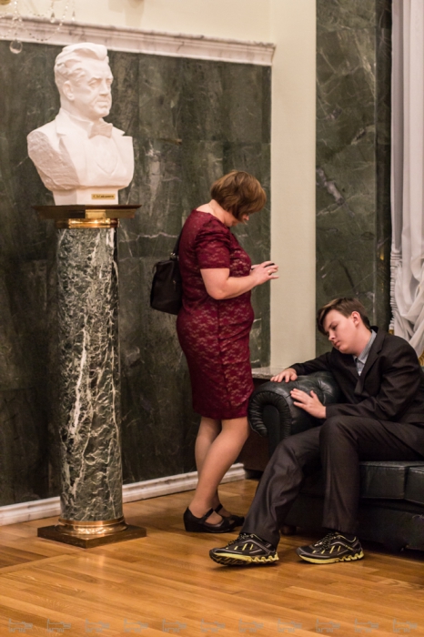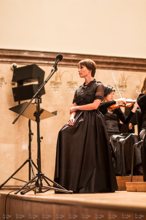 На сцену участники вышли уже подготовленным в полевых условиях: 24 оркестр и Хаматова представляли композицию в Пермской краевой филармонии.