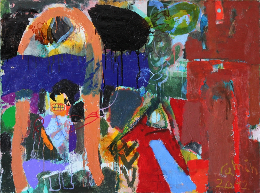 Вообще, об этом не думаешь, пока не зададут вопрос. Это значит — рисующий традиционные, тюбетеечные, орнаментальные картины? Нет, это неправдочно, это псевдо. Рудольф Нуриев - его можно назвать национальным? Он в танце был животным, партнерши этой страсти пугались. Татарское ли это? Кто рос в культуре, он эту культуру и продолжает, в воспитании детей, в жизненных бытовых укладах. У меня перед глазами в детстве висели ковры в орнаментами, эти формы во мне заложились. Когда я рисую абстрактные линии, получается больше завернутых завитушек, чем прямоугольных и ломаных. Когда я бываю на Западе (читтэ булам), то вижу, что это мое характерное. Также мне важны соотношения цвета, их красота - в этом я нахожу смысл и радость. В Риге меня называют восточным, а здесь раньше - всегда западным.