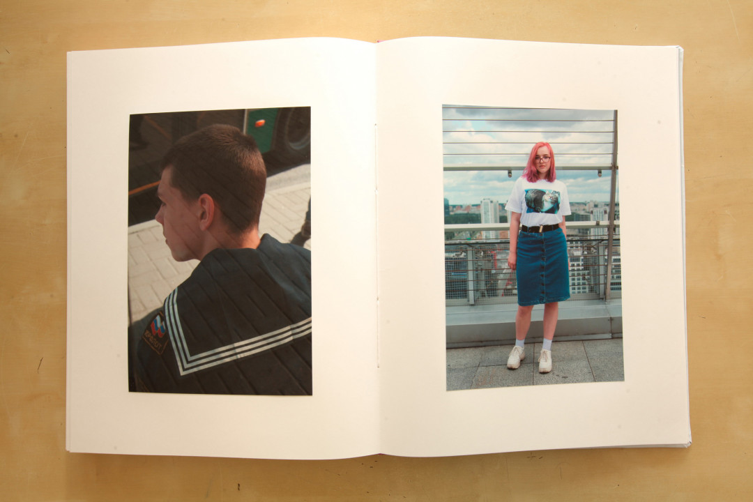 Над книгой “Gazing at the Post-Soviet”/ «Вглядываясь в постсоветское» я работал несколько лет, в нее вошло 88 фотографий, сделанных в Петербурге, Приозерске, Волхове, Заполярном, Мурманске, Никеле, Петрозаводске, Петропавловске-Камчатском, Новгороде, Волгограде, Москве, Новосибирске, Бресте, Минске. Я родился в 1987 году, поэтому немного зацепил советскую реальность, ходил в детский сад. И хотя помню мало, но чувствую, что на мне отразилась та эпоха. Сейчас я наблюдаю за молодыми людьми, поколением Z, которые о Советском Союзе знают только из рассказов и книг, их сформировало другое время. У них другой образ мышления. При этом ребята существуют в городском пространстве, которое остается советским: здания, памятники, символика. Книга состоит из портретов и пейзажей — на каждом развороте читатель видит противопоставление. Для меня важно понятие взгляда — я снимаю так, чтобы портреты можно было рассматривать долго-долго и пристально, как на пейзаж. Особенно меня интересовали визуальные признаки в людях или ситуациях, где я оказывался, выявляющие резкий разрыв между двумя эпохами: советского и постсоветского. Макет книги мне помогала делать Анастасия Макаренко, куратор галереи «Егорка». Сейчас «Вглядываясь в постсоветское» существует только в виде выставочного эксземпляра, созданного специально к фестивалю, в дальнейшем я планирую издать ее тиражом 50-100 экземпляров.