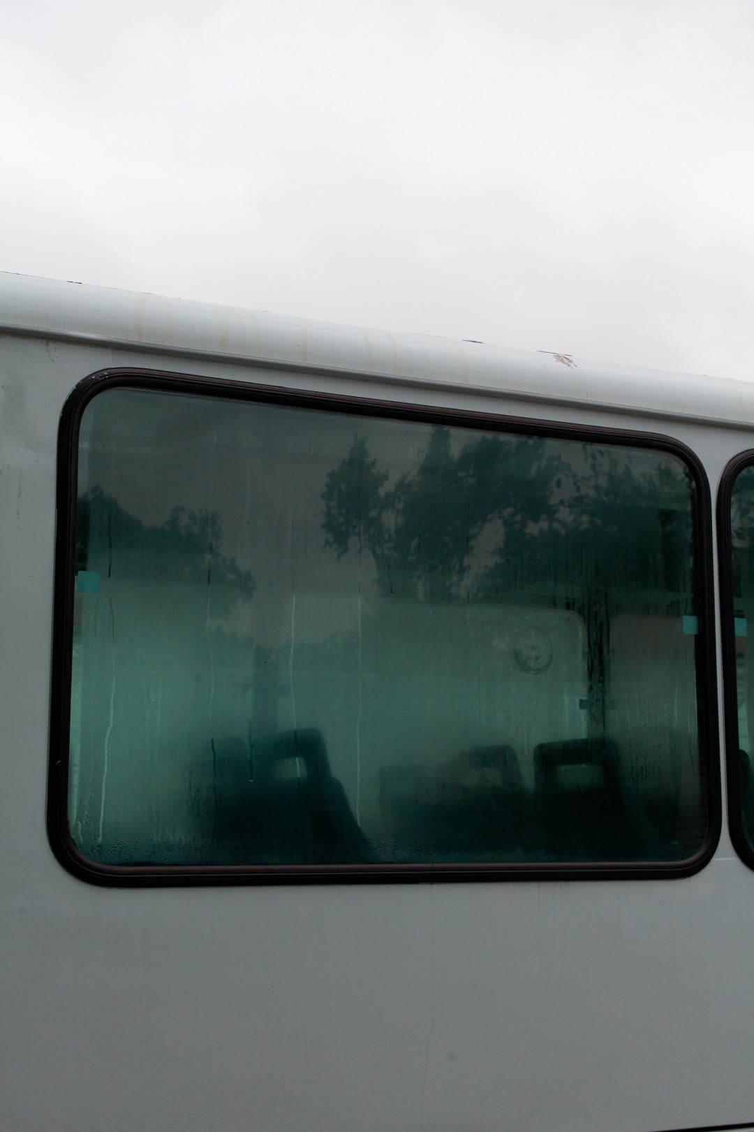 Как-то в Новой Ладоге я стоял на автостанции и пытался уехать. Внезапно я увидел, что передо мной стоит автобус из советского времени, со странными окнами. Сам он был серый, а погода была пасмурная. В такой ситуации зеленоватые стекла контрастировали с окружающей действительностью.
