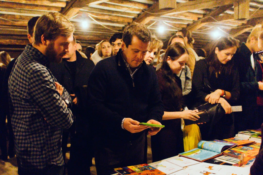 Но и всего второго этажа для события такого масштаба оказалось мало. «Смена» предоставила для фестиваля и пространство чердака, где создали детскую зону, а также свое продолжение нашла выставка «Кинотеатр повторного фильма». Тех, кому от 3 до 10, учили создавать книжки-раскладушки и занимались химией. Родители, пока их юные дарования осваивали новый материал, выбирали занимательные книжки. Среди них был представлен свеженький гид «Путешествие по Татарстану» от креативного агентства Evolution. На продажу выставили всего 50 экземпляров, поскольку официальная презентация пройдет только 23 декабря. Но один гид забрал с собой мэр Казани Ильсур Метшин.