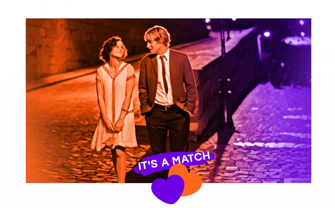 Голливудский сценарист Гил Пендер в поисках вдохновения отправляется с невестой Инес в Париж. Но любимая скоро начинает ему изменять с другом семьи, а он каждый вечер в одиночестве отправляется в 1920-е, где заводит дружбу с Хемингуэем, Фицджеральдом, Дали и Стайн. Писатели помогают ему с его романом, а заодно открывают ему глаза, что по сюжетным законам невеста ему неверна. Расстроенный Гил заходит на Badoo, рассеянно пролистывает профили и вдруг натыкается на девушку, похожую на натурщиц Модильяни. Габриель продает антиквариат и так же, как и он, увлечена минувшими эпохами. Метч не заставляет себя ждать. А за ним следует первое свидание.