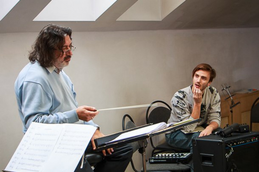 На первой репетиции, когда музыканты только оказались перед нотами, а я перед музыкантами, мне было абсолютно неведомо, чего ожидать. Мы решили главные технические задачи со звуком (подключили мне комбик) и дальше все пошло как по маслу. Компромиссы находились легко, музыка лилась дождем, атмосфера была потрясающая: музыканты улыбались, а я как больной тряс головой в такт музыке и с важным видом бегал по залу, слушая еще непривычное единство. Оркестр играл как единый живой организм, всецело приросший к телу моих песен - простите за биологическую метафору. Иногда мы делали паузы и что есть сил аплодировали нашему музыкальному "архангелу" (как мы его ласково зовем) Ильясу Камалу, за написание гармоничных партитур для концерта и отказ от сна в течение нескольких дней.