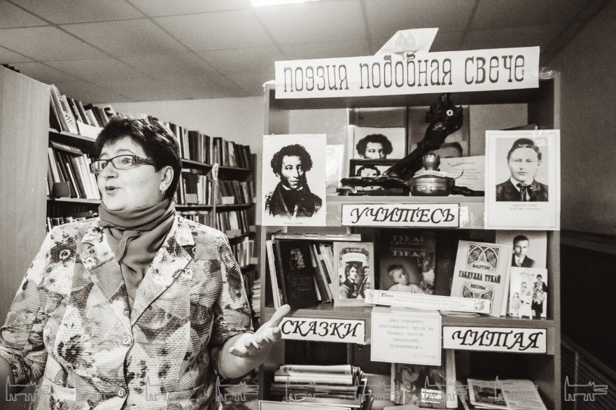 Она начинает рассказывать о том, что у нее здесь есть, и не может остановиться. Останки каких-то животных и черепки от посуды с наконечниками стрел, найденные местными мужиками в Булгаре. Поделки детей, некоторые из которых уже женились. Целый музей села, с наличниками, прялками, серпами, словом, всей утварью - разумеется, настоящей, принесенной из дома. Отдельная детская комната. В конце (разумеется) библиотекарша вручает книгу со стихами, изданную в «Идель-Пресс» тиражом 1000 экземпляров. «Я сама из села Ромодан приехала, 30 лет назад, замуж вышла», - и тут же начинает читать стихотворение о муже.