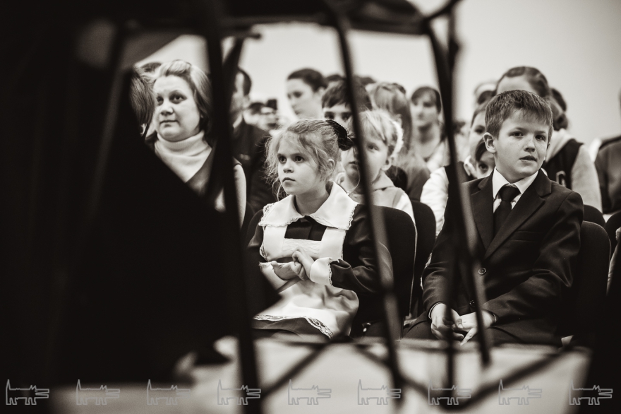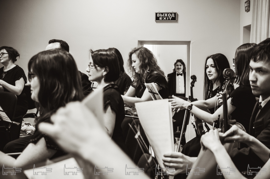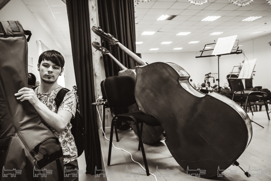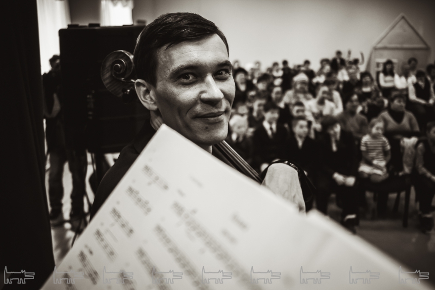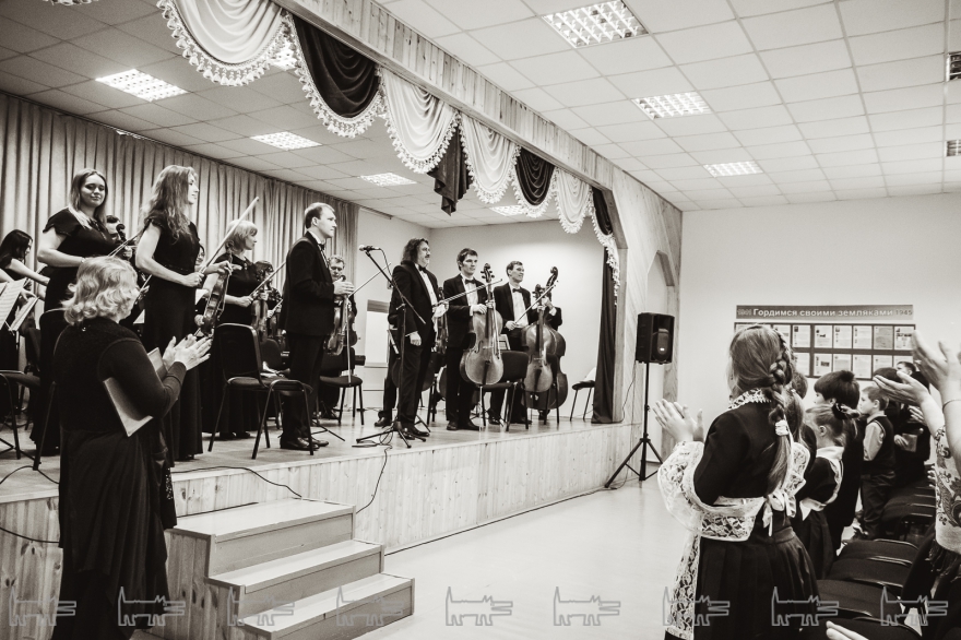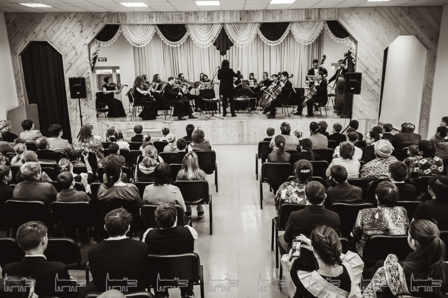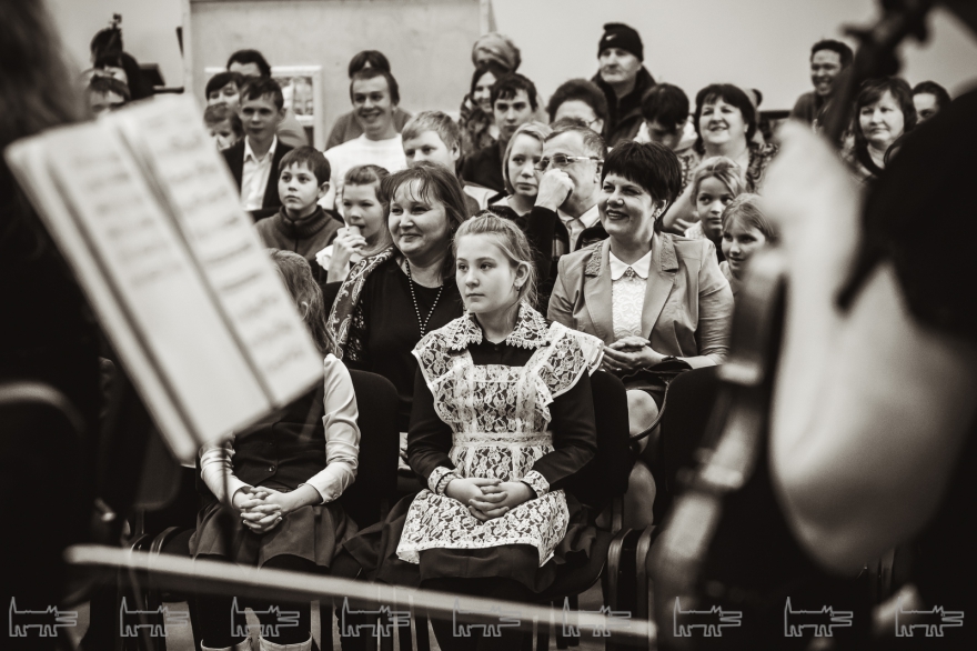 Концерт, конечно же, организован с помощью администрации района. Проходит он в час дня. Основная масса - школьники, из русских и татарских школ (то же национальное сочетание и среди взрослых). Девочки приходят в школьной форме, мальчики одеты более свободно. Единственный серьезный парень в очках орудует HD-камерой, которую цепляет на велотренажер, а потом обещает выложить все на личный Youtube-канал («Сейчас там ничего нет»). На заднем ряду девочки снимают все на планшет, показывая пальцем на контрабасиста Игоря Завадского, самого неформального в коллективе - с туннелями в ушах.