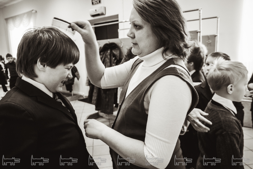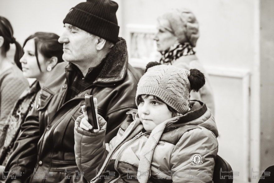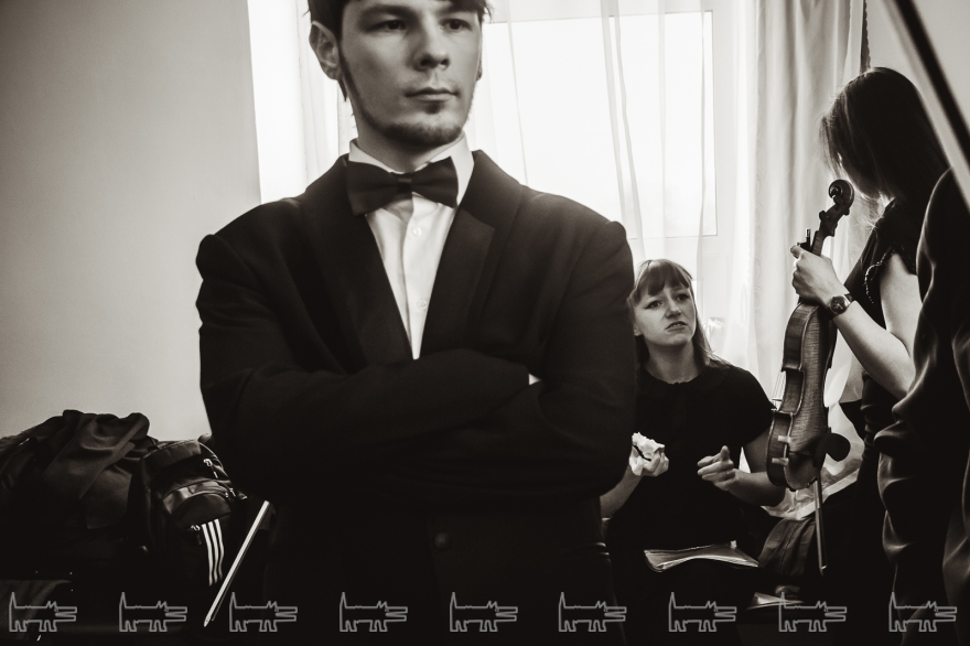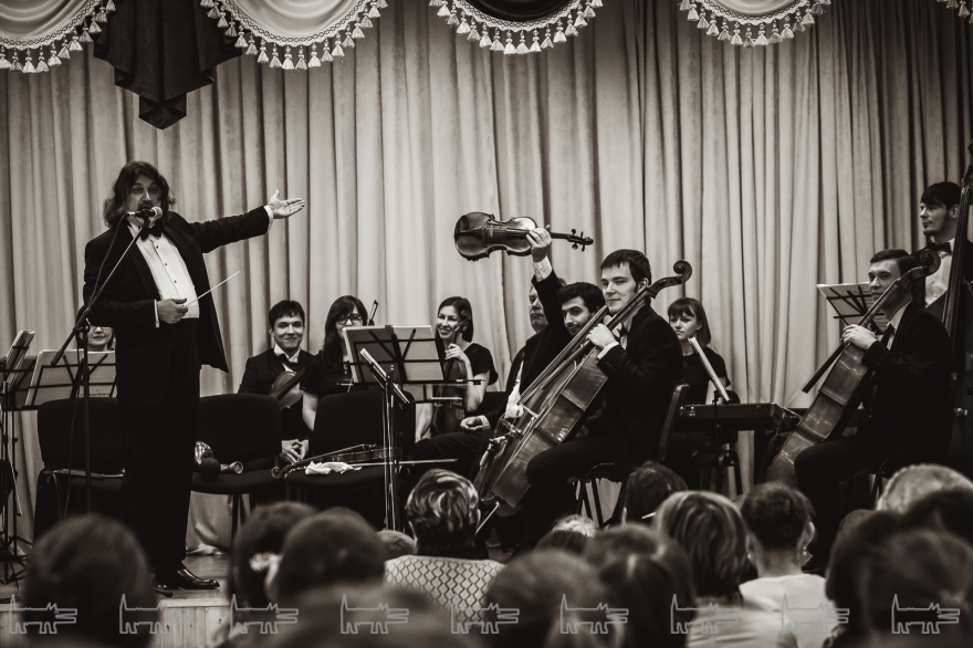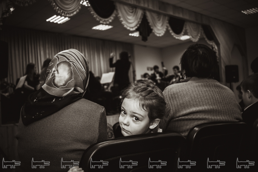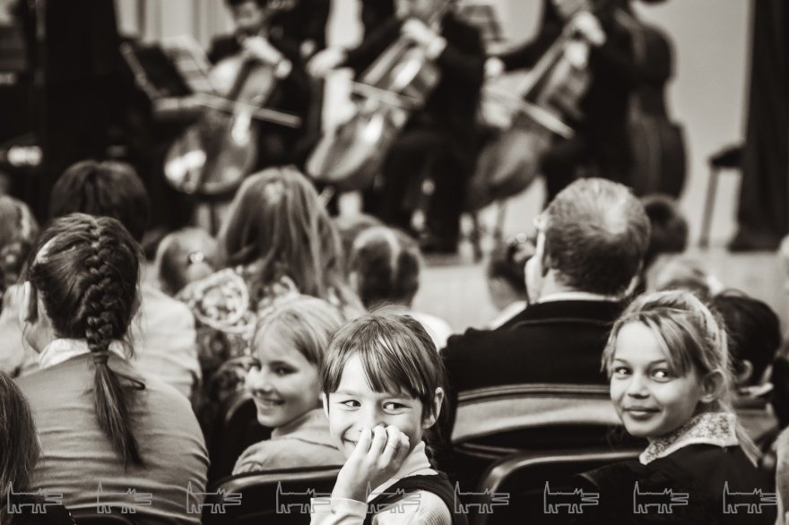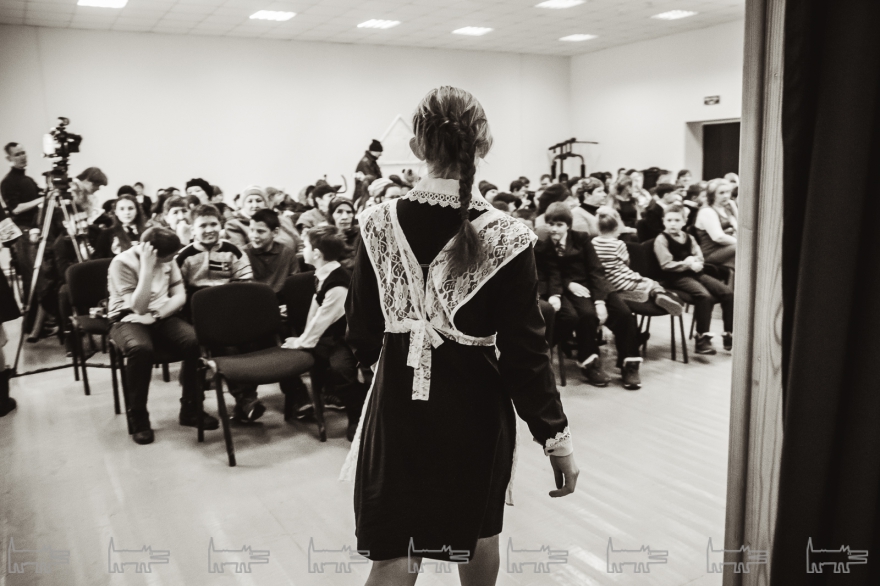 Концерт, конечно же, организован с помощью администрации района. Проходит он в час дня. Основная масса - школьники, из русских и татарских школ (то же национальное сочетание и среди взрослых). Девочки приходят в школьной форме, мальчики одеты более свободно. Единственный серьезный парень в очках орудует HD-камерой, которую цепляет на велотренажер, а потом обещает выложить все на личный Youtube-канал («Сейчас там ничего нет»). На заднем ряду девочки снимают все на планшет, показывая пальцем на контрабасиста Игоря Завадского, самого неформального в коллективе - с туннелями в ушах.