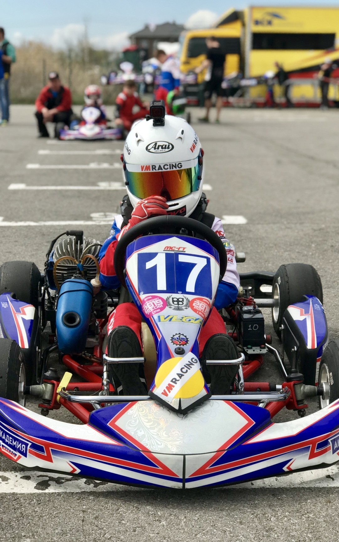 В пять с половиной лет мальчик попробовал свои силы на спортивном карте в подмосковном Зеленограде с командой VM Racing – одной из ведущих школ картинга в стране, и познакомился со своим нынешним тренером Виталием Рыжковым – чемпионом СССР, многократным чемпионом Москвы – а после провел несколько спортивных тестов в Сочи. В шесть лет пришел в Академию РАФ – Российской автомобильной ассоциации – и принял участие в своей первой спортивной гонке федерального уровня в Ростове-на-Дону.