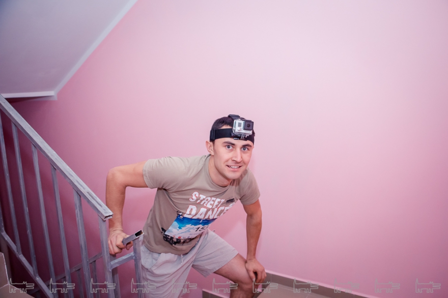Тем не менее, около 120 парней и 40 женщин преодолели все ступеньки. Сначала им нужно было подняться на два этажа из парковки, пробежать к входу здания - а далее только розовые стены, бесконечные пролеты и борьба с собственными возможностями. Помощь скорой помощи понадобилась одному из участников - кажется, ему стало плохо от обезвоживания.