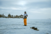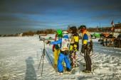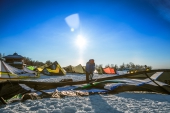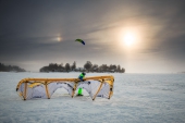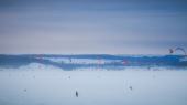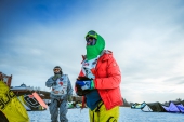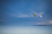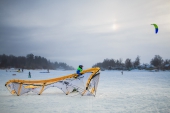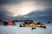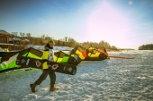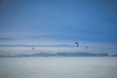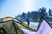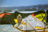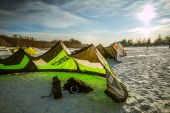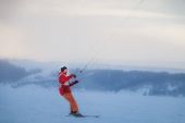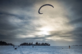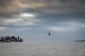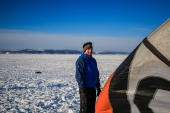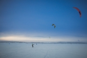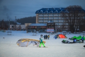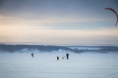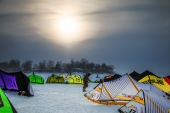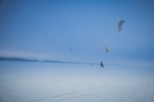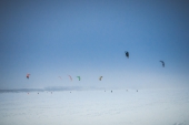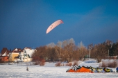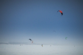 Вчера, 8 января, соревнования пришлось отменить из-за крайне низких температур. Сегодня под двадцать градусов, через пять минут ноги начинают серьезно мерзнуть, но это явно не касается спортсменов. Она надувают кайты, встают на лыжи и сноуборды и уезжают вдаль. Стоя посреди обледеневшей Волги, закрыв глаза, можно только по шорохам определить, что мимо тебя проносится кайтер, держась за гигантского змея. Постепенно ветер опускается с верхних слоев атмосферы, да так, что вдали намечается метель...