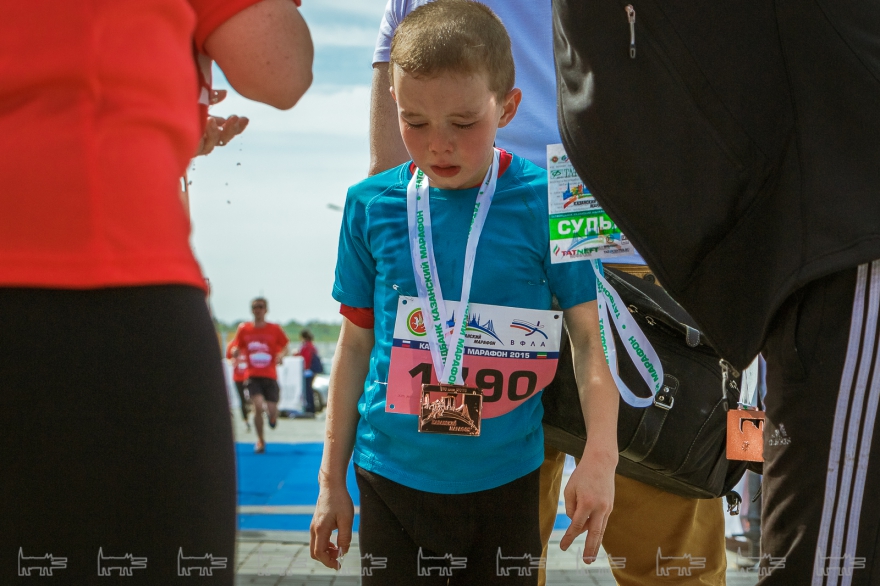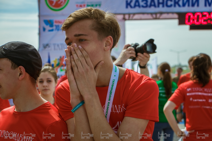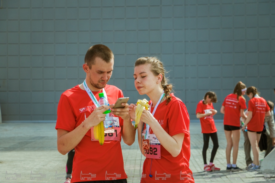 Родственники, сочувствующие, судьи и оргкомитет смотрели, как бегут по гигантскому экрану «Казань-Арены», готовили коробки с медалями (бронзу получил каждый, кто пробежал 5 км, серебро - осилившие 21,1 км и золото, соответственно, те кто пробежал главную дистанцию в 42 километра 195 метров). По словам ведущего, 195 метров на самом деле, довольно весомая прибавка и бежать ее морально и физически тяжело. А появилась такая дистанция благодаря тому, что в 1908 году на марафоне в Лондоне перенесли стартовую черту, чтобы королевская семья могла наблюдать за стартом из окон виндзорского замка. Через некоторое время именно эта дистанция стала традиционной для международных марафонов.