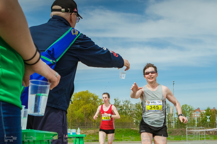 Около Чаши, которую марафонцы обегали весьма замысловатым маршрутом, их ждали с намоченными губками, водой, энергетиком, а некоторых - с именными бутылками.