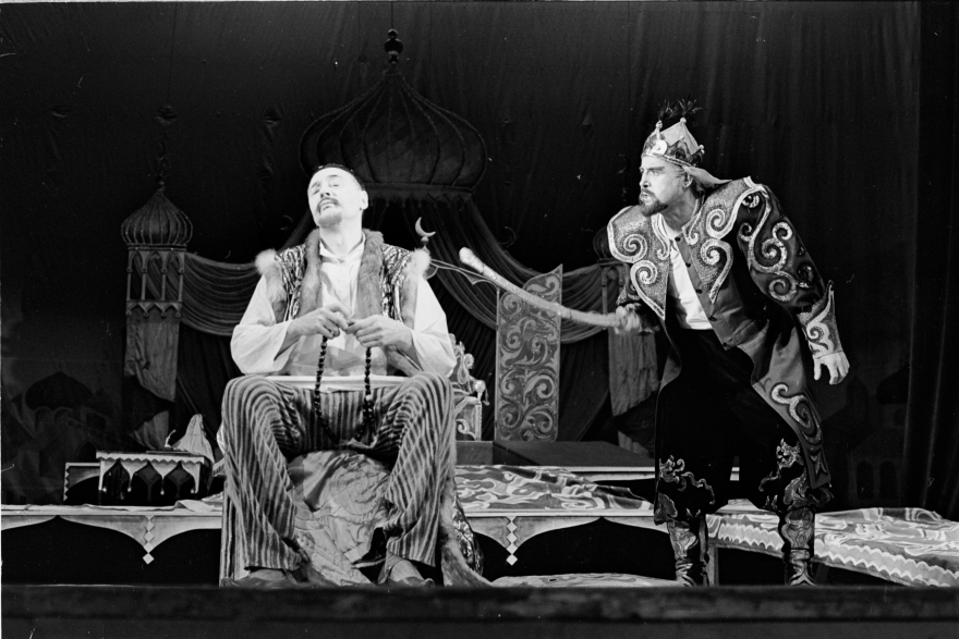 И Фарид сказал: если мы поставим сказку из жизни ханов и баев, вряд ли нам будет интересно, зрителю. И он предложил сыграть глубокую пьесу, нашел сирийского автора с очень похожим произведением, выбрал одну линию. Если раньше в пьесе был один герой, тут появился второй - народ. Я смотрел недавно прогон - у меня был шок, оторопь от той большой проблемы, которую поднимает спектакль, это проблема взаимоотношения руководителей страны и народа, простых людей и чиновников. Я долго не мог прийти в себя. Так что если вы думаете, что придете на премьеру и посмеетесь - то нет. Тут придется думать».