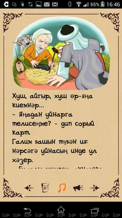 В литературной части проекта участвовали три человека. Ильгиз Зайниев первым начал работу с одноименной народной сказкой и написал историю. Далее Луиза Янсуар на основе сказки написала пьесу, а также его литературную адаптацию для мобильного приложения. Сергей Челяев перевел историю на русский язык.