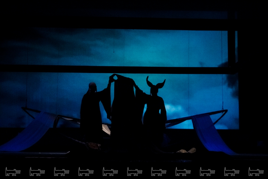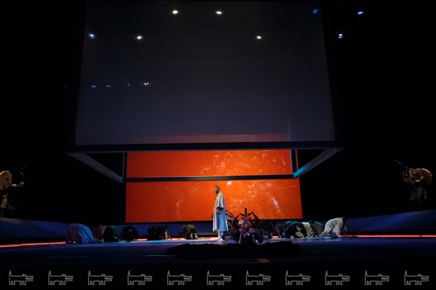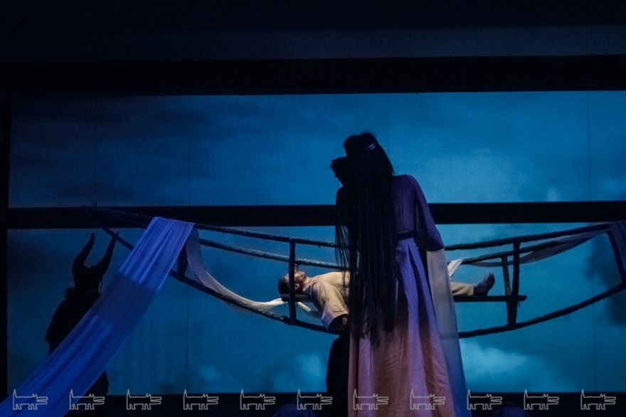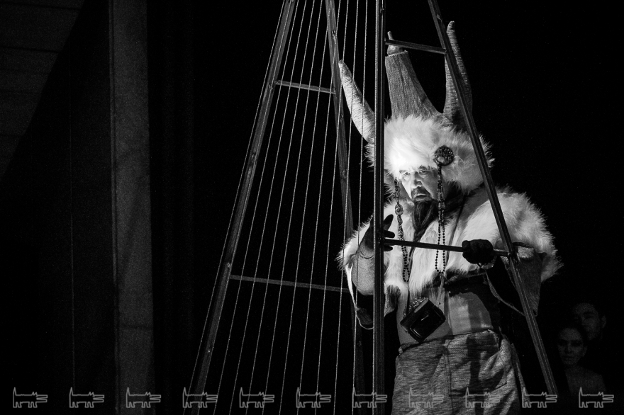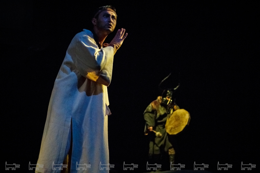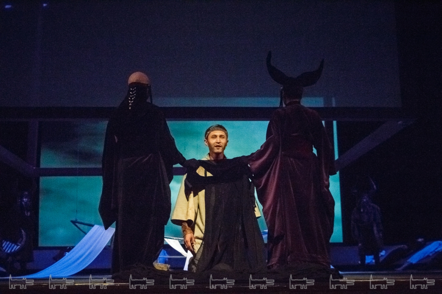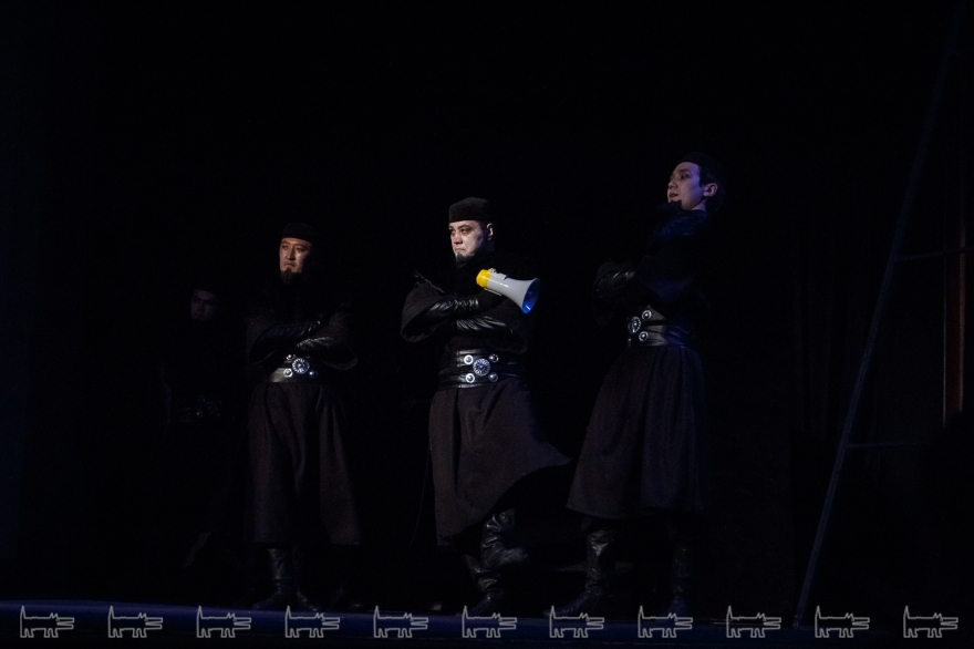 Коркут - герой тюркских народов, поэт-песенник и композитор IX века, по легенде нашедший бессмертие в искусстве. Особенности метафоричной литовской режиссеры Вайткус помножил на казахскую ритуальность, усмирив буйную эмоциональность, характерную для тамошних актеров. Так что на сцене маски, бубны, а ля античный хор соседствовали с видеорядом, кубом-экраном, лазерами, а мусульманские молитвы - выходом некоего языческого бога. А сам Коркут играл не на кубызе, а на гораздо более выразительном по виду полене.