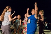 Завершал вечер фуршет на набережной Кабана, которая этим летом стала площадкой ресторана «Хумо». Так что зрителям, пришедшим без бейджей, пришлось довольствоваться видом пятачком на входе. Что, впрочем, не снижало энергетики казахской группы «Туран», который даже в достаточно теплый вечер не снимал даже вне сцены меховые сценические костюмы. От песен в духе мини-спектаклей, исполненных на народных инструментах, они постепенно перешли к плясовым (которые, казалось, мог бы исполнять Борис Гребенщиков - было в них что-то русское). И тут перед ними начали страстно вытанцовывать соотечественницы в современных платьях, к которым присоединились мужчины. Возможно, такое каждый день происходит в Казахстане, но в Казани, наверное, в первый раз. После чего градус интернационализма повысился при появлении некоего алтайского поп-певца, а объединил бывшие братские народы СССР Юрий Антонов и группа «Мираж» - в исполнении кавер-бэнда «Австралия».