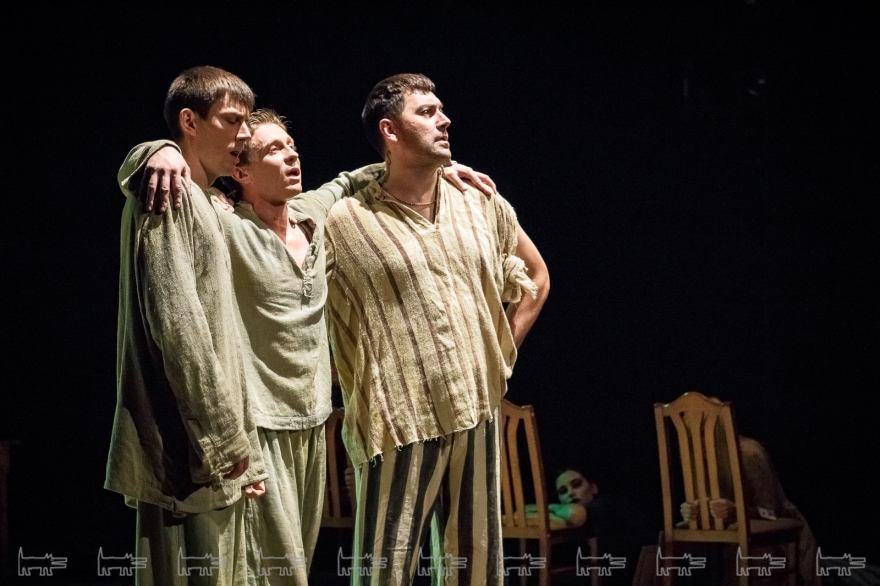 Центровой же фигурой спектакля становится Эмиль Талипов, играющий итальянца Роберто. Его, как и диджея, а также мрачного сутенера Джека (Раиль Шамсуаров), забирают в камеру. Талипов мастерски переиначивает средиземноморский акцент и каждый монолог выстраивает еще и пластически - описание его непредумышленного преступления, попытку наладить контакт с сокамерниками, готовку пойманного (игрушечного) зайца.