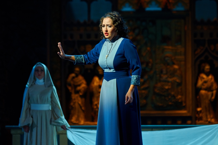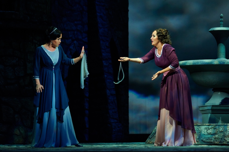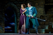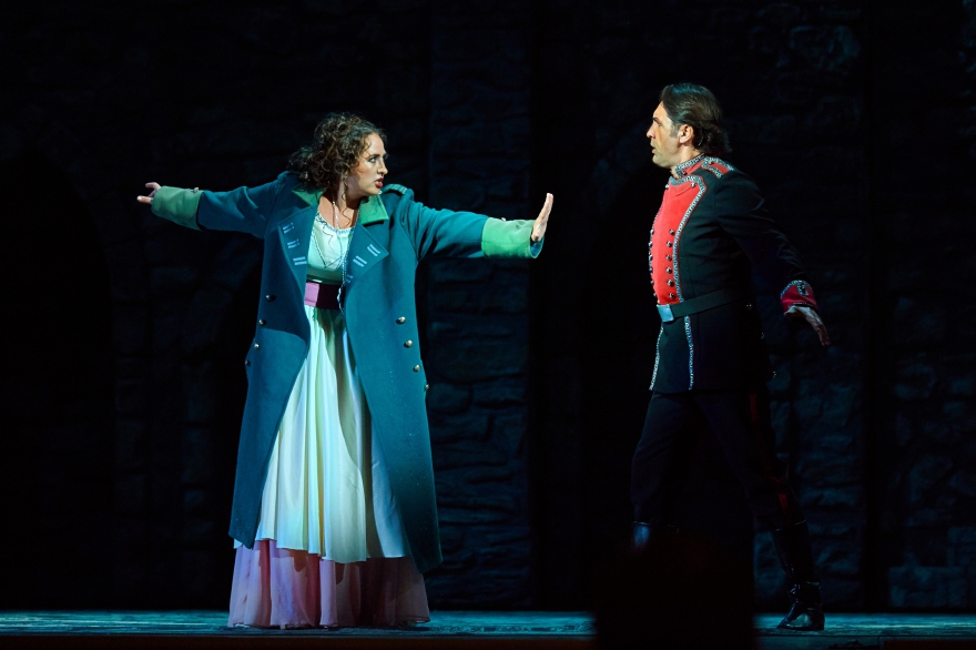 Страдают все, кроме хора, который, напротив, радостно бросается и в бой, и в пляс, и в споры. Ведущие же артисты, напротив, намеренно мрачны – и это на фоне невероятно мелодичной музыки, которая порождает ожидаемый контраст, когда мечты о счастливом будущем (будь то в горах или в семейной тиши), очевидно, совершенно не достижимы. При том, что действие перенесено из 15 века в 19-й, в этом плане в «Трубадуре», похоже, ничего не изменилось. А значит, у певцов всегда есть возможность пробить слушателя буквально насквозь, с помощью семейных перипетий и вокальных молитв о пощаде и счастье, покорив его к концу постановки окончательно.