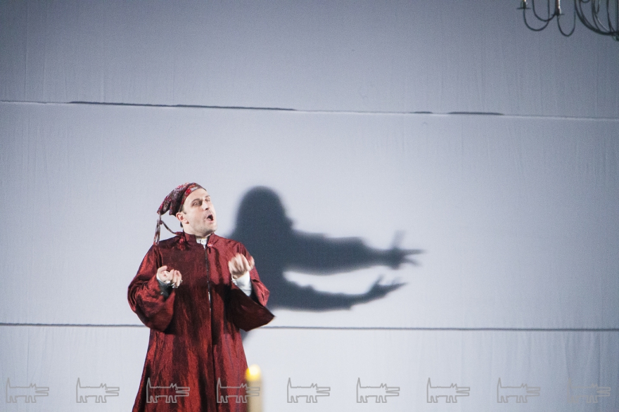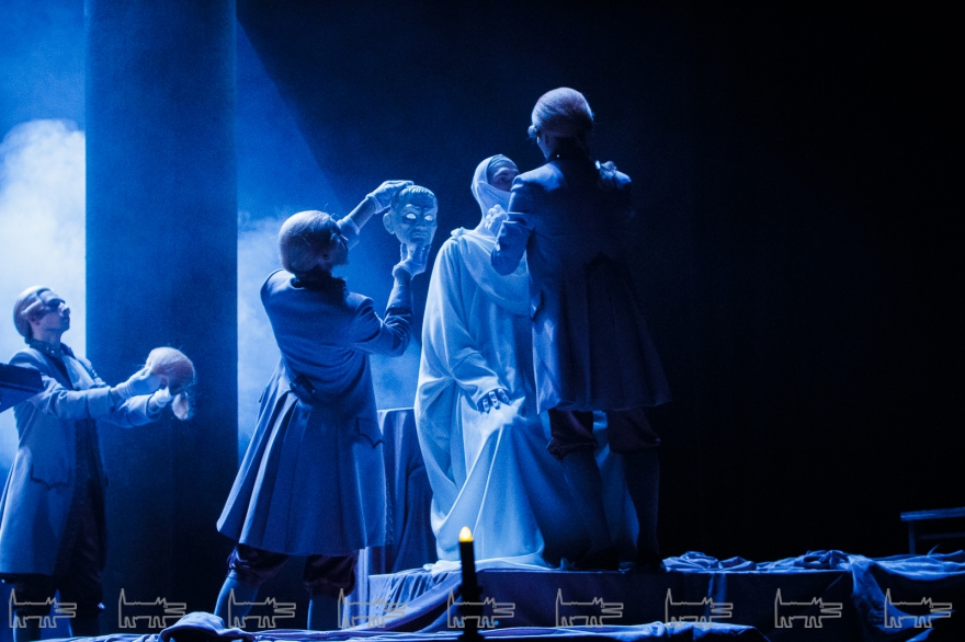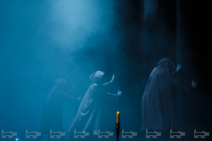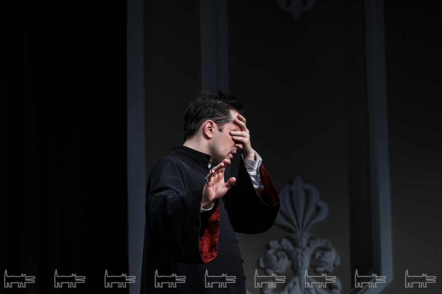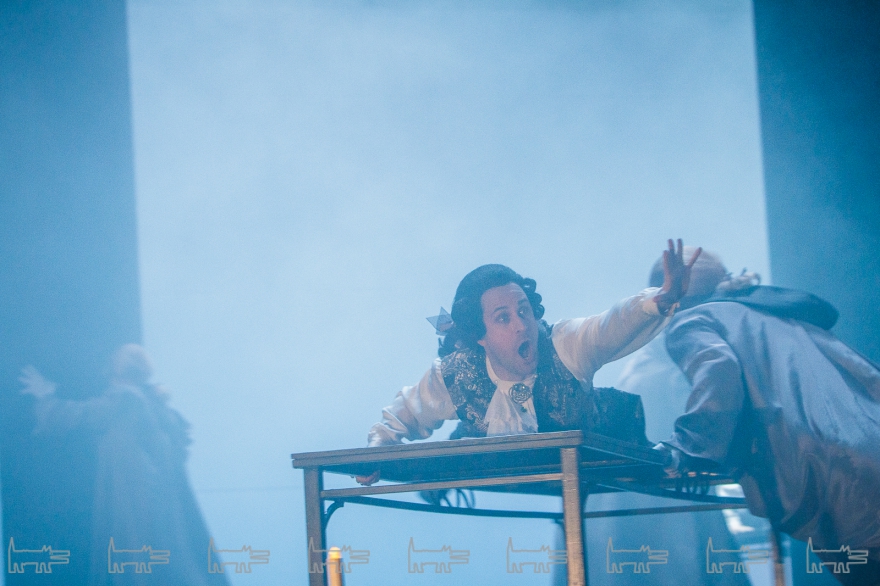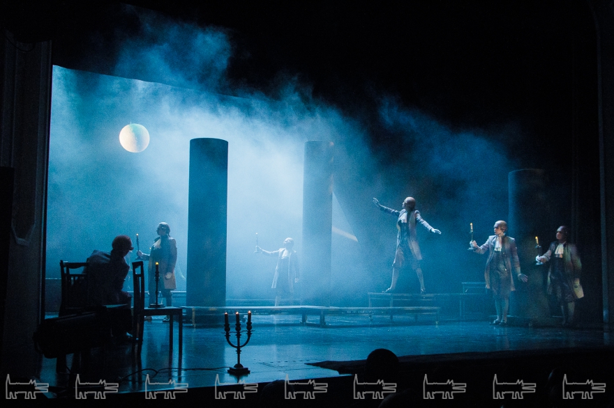 Но в случае с «Дон Жуаном» удивительно не это. А то, что постановка кажется сделанной Григорием Дитятковским через голову Александра Яковлевича: она практически не отличается от других спектаклей театра имени Качалова. Это становится ясно с первых минут, когда сцена стремительно наполняется актерами, массовкой, декорациями и начинается привычное суетливое хождение по сцене. Режиссер работает широкой кистью и использует целую обойму эффектных сценических приемов. Это и тени, и огромные клубы дыма, и игра со светом, и трансформирующиеся декорации, при помощи которых создаются глянцевые барочные мистерии.