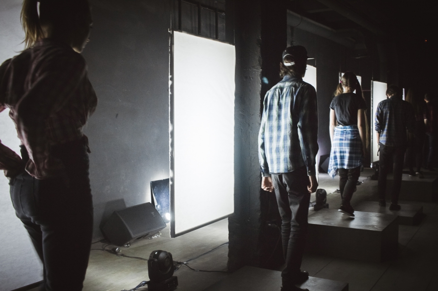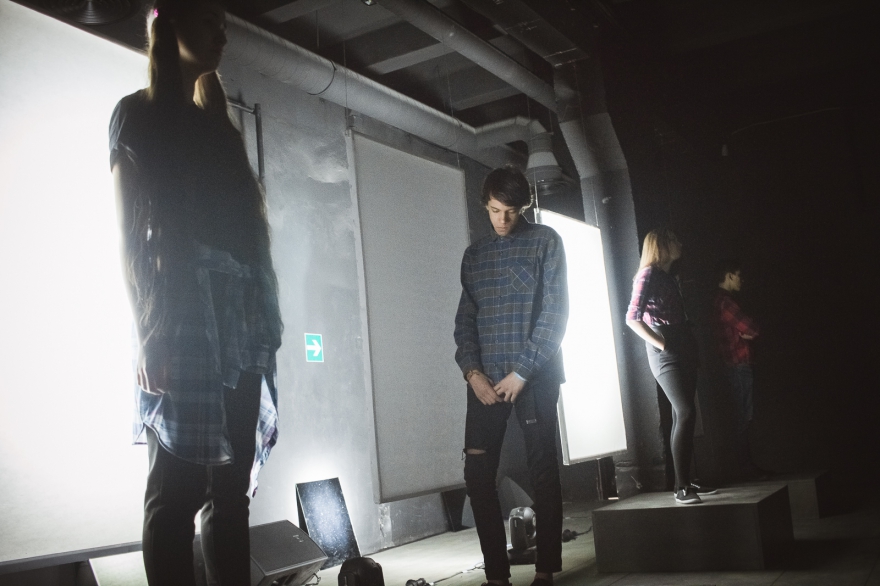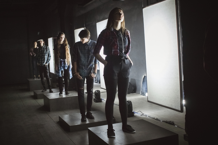 Каждый из героев стоит перед белой стеной, после каждой сиюминутной сценки свет гаснет. Герои - в кедах, джинсах, у многих рубашки завязана на бедрах - порой обмениваются приветственными и прощальными жестами, но, даже если по сюжету они и тусуются вместе, визуально они постоянно отделены.