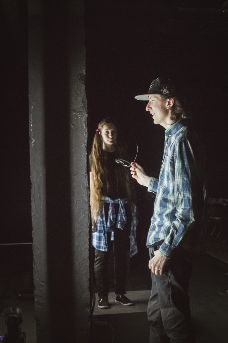 И на этот раз Волкострелов, вернувшийся в Казань после триумфальных осенних гастролей, взял текст любимого драматурга Павла Пряжко. А он, в свою очередь, решил в этой пьесе исследовать речь подростков. Среда - максимально естественная. Да, судя по объяснительным запискам, его герои слушают как-то подземный гул. Но, в основном, они просто бессмысленно шляются по улицам, кафе, метро. Шум сопровождает их постоянно, говорят они естественно, то есть невнятно. Потому, как и в других спектаклях Волкострелова, короткие монологи и диалоги слышны наполовину, создавая реалистичный вербальный нойз, способствующий погружению в незнакомый быт.