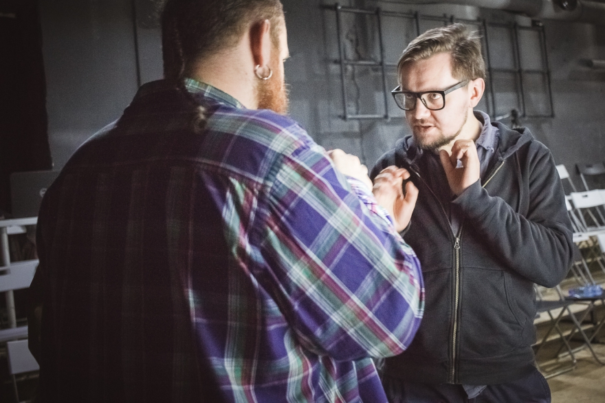 Первый день рождения «Угол» отметил постановкой Дмитрия Волкострелова «Карина и Дрон». Первая репертуарная вещь творческой лаборатории - не совсем пьеса. Скорее, слепок с реальности, который уместнее всего смотреть с ровесниками актеров.